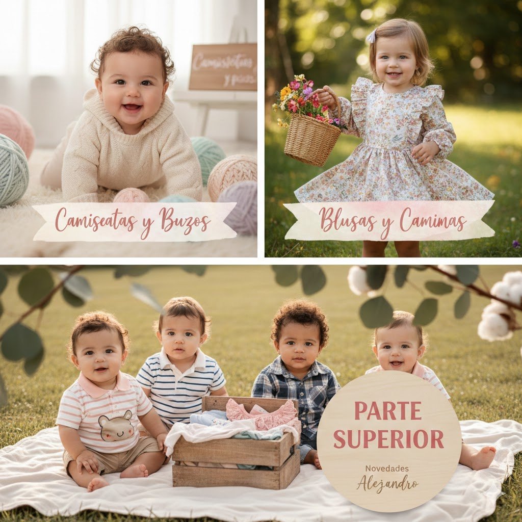 «Tesoros seleccionados para cada etapa: Gran variedad en seminuevo de 0 a 6 meses, y prendas exclusivas desde los 9 meses hasta los 5 años.